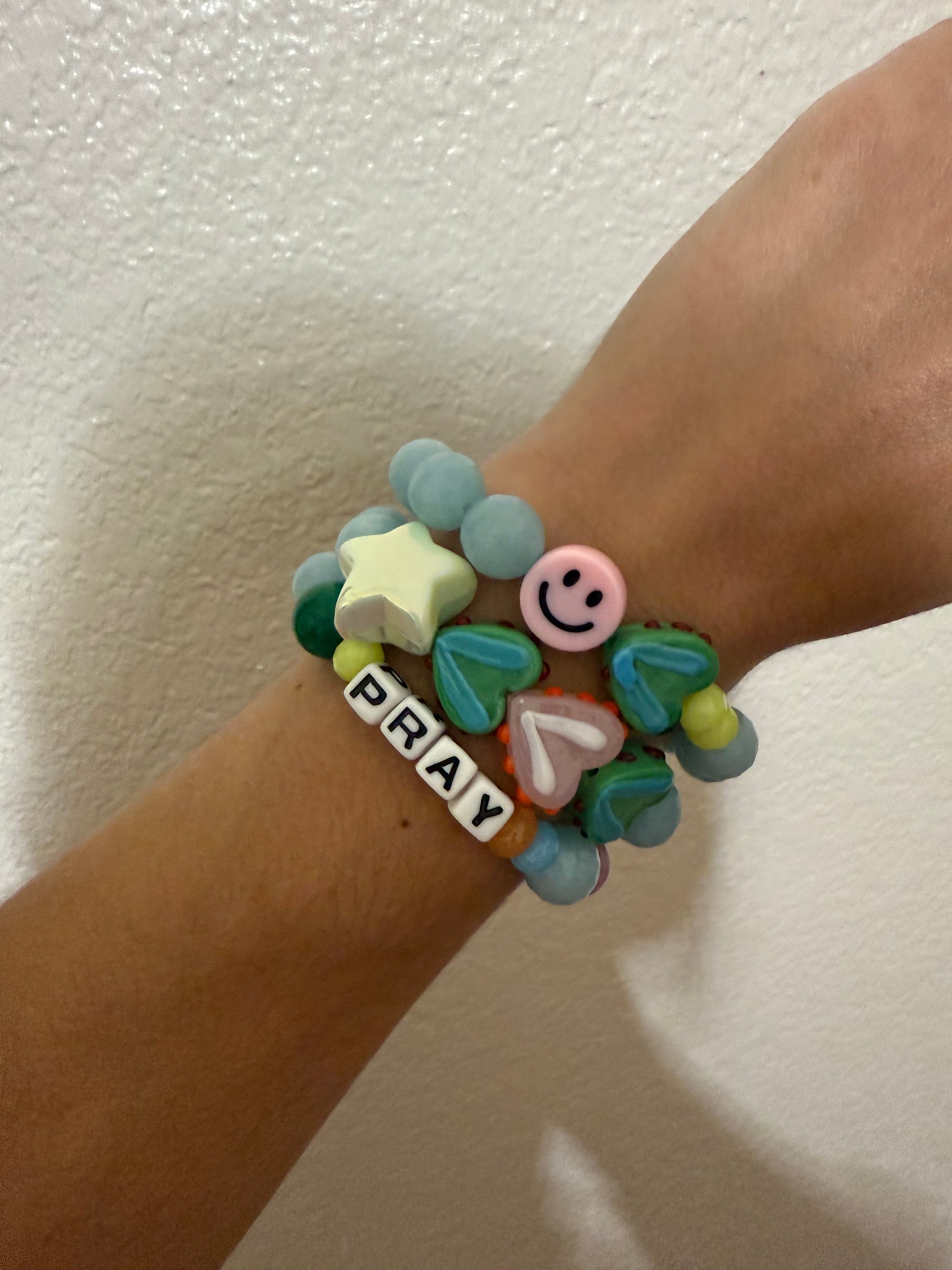 Jade and mixed beaded bracelets. Fits a small medium wrist. Set of 3. One of a kind.