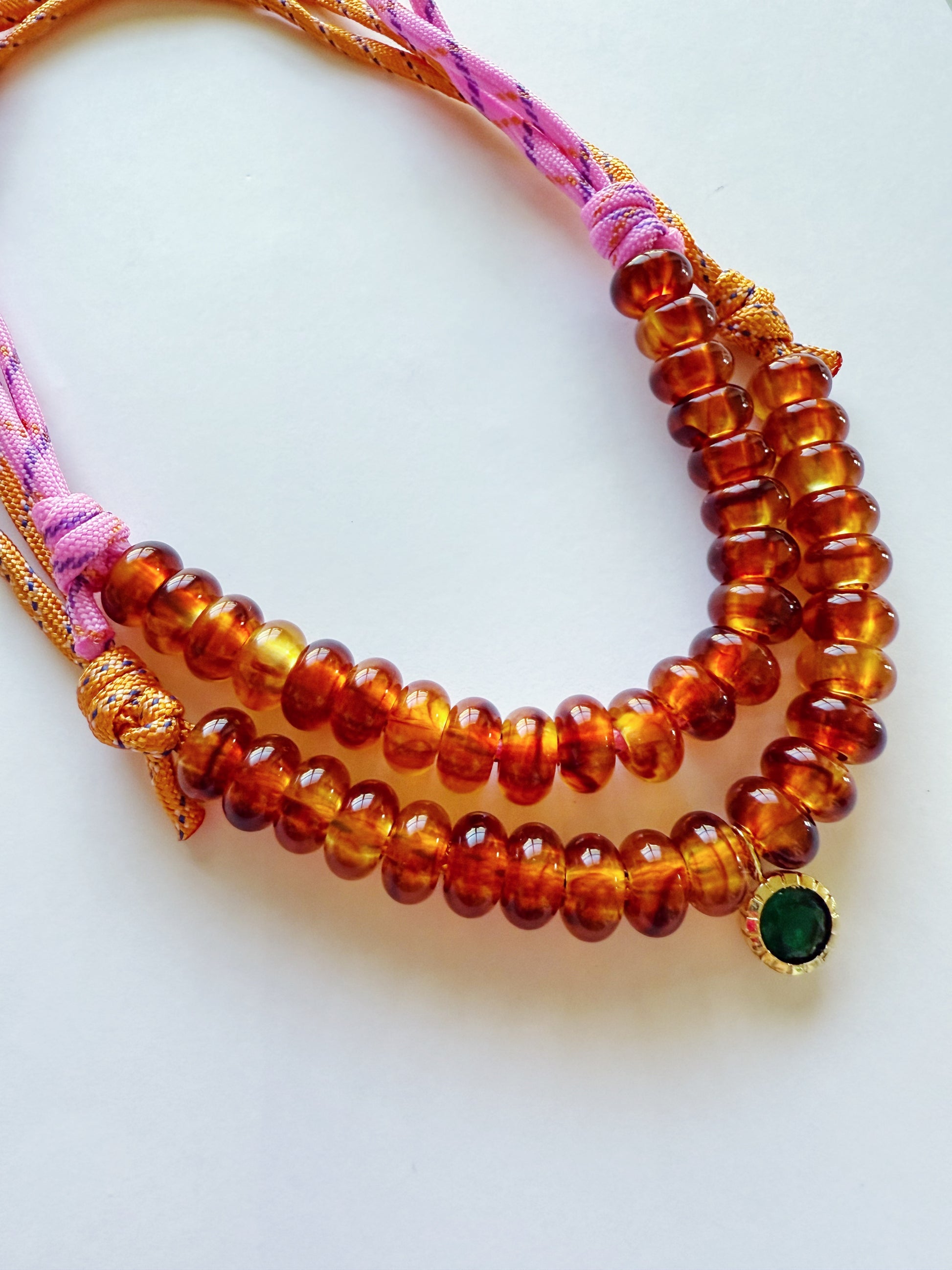 pink and purple toned paracord, adjustable for length. Tortoise colored acrylic beads. Layers well with others.