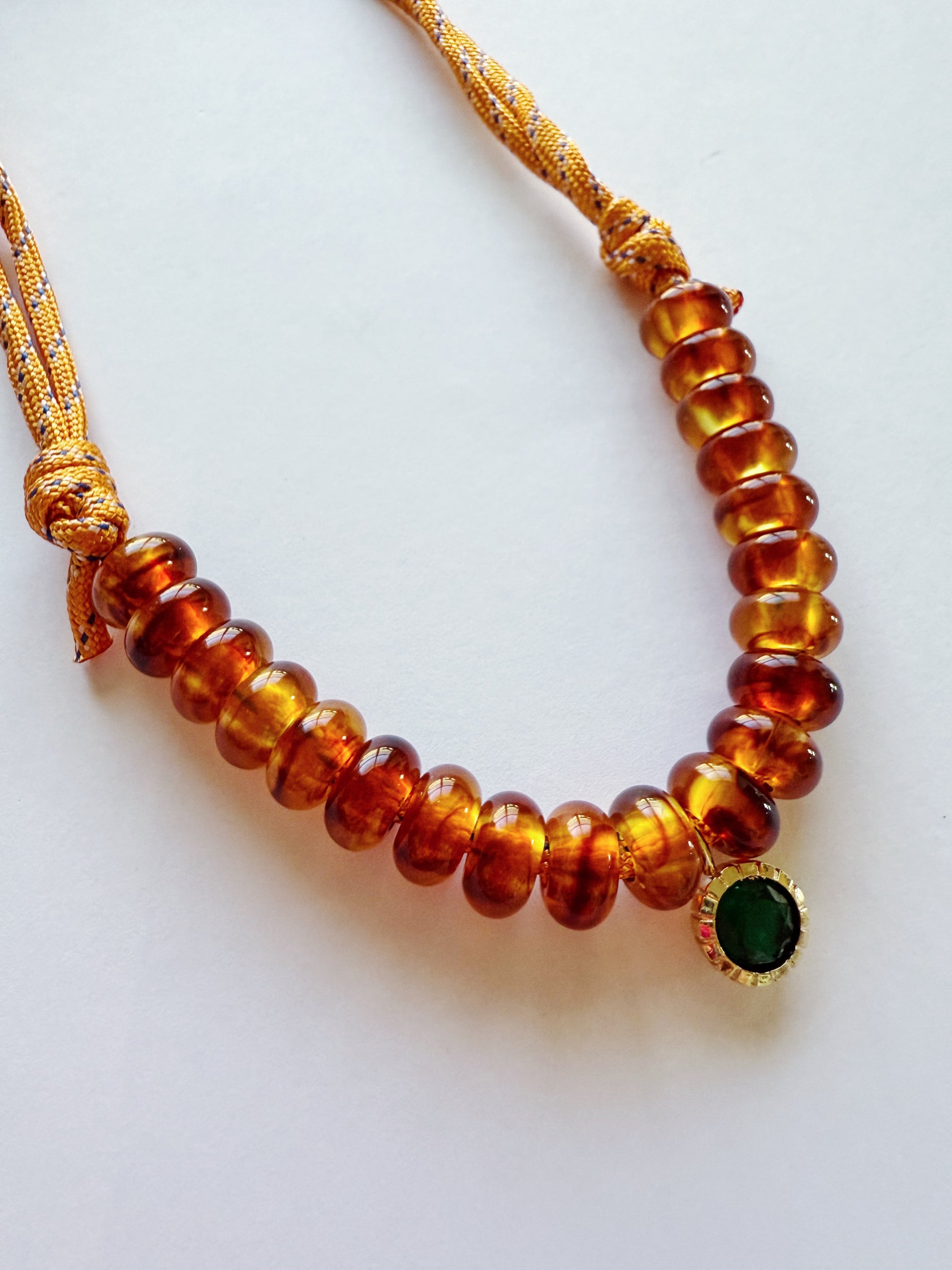 Orange, gold paracord adjustable with a green emerald gemstone gold filled. Ready to ship.